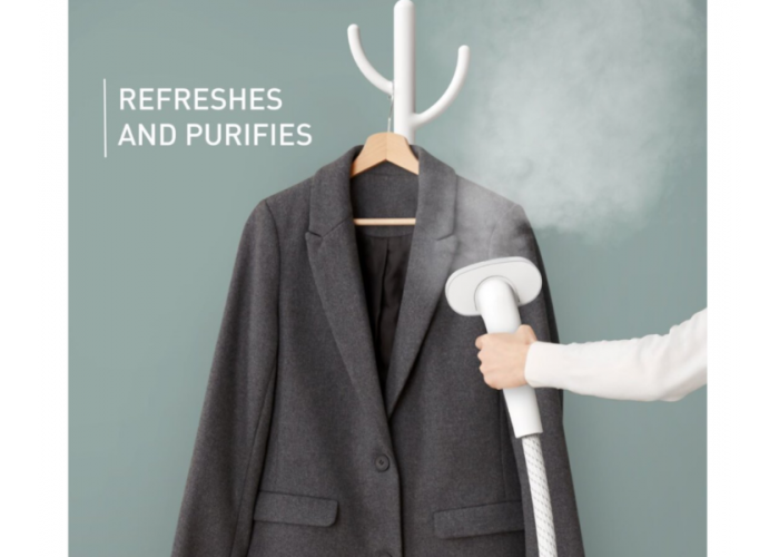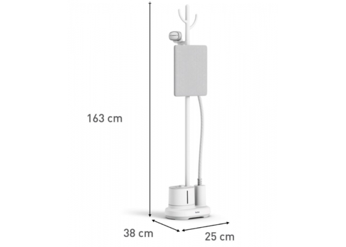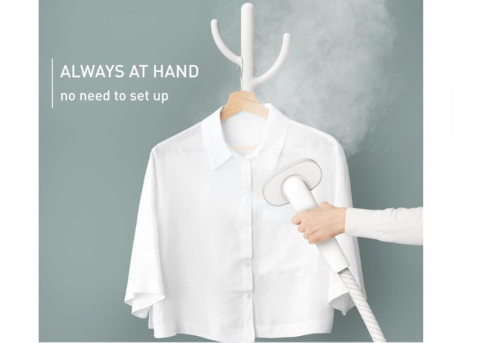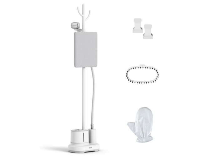 Аксессуары: два зажима для подвешивания брюк или детской одежды, специальная щетка для отпаривания более плотных тканей и перчатка для легкого отпаривания.