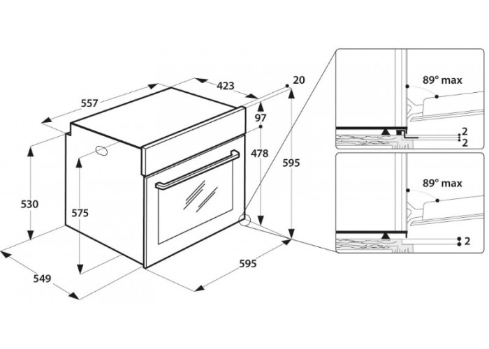 • Размеры устройства Духовка H / W / D (см): 59,5 / 59,5 / 55,1 см
